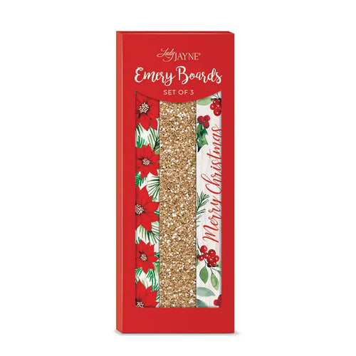 Glitter Emery Board Set of 3 Poinsettia Holly Berries