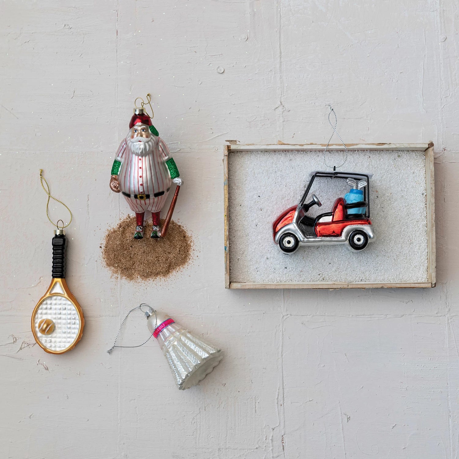 This ornament is a miniature celebration of the golfer's spirit, crafted from glass and hand-painted with care. The glittering accents and multicolor finish bring the excitement of a day on the course to the holiday decor. At 4.25 inches long and 3.25 inches high, it's a charming addition that's sure to catch the eye and spark conversations about favorite pastimes and memorable rounds.