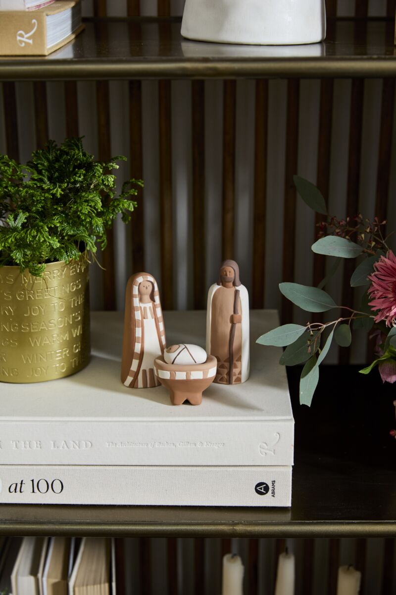 Display the warmth and joy of the Christmas season with the handmade artistry of the Pintura Nativity Scene. Simple and stunning, this ceramic collection of Mary, Joseph, and baby Jesus features a terracotta base tone with white details. This small trio layers beautifully into a holiday table or on a mantle among greenery. Versatile with its simple rounded shapes and neutral colors, this nativity is an heirloom set to love for years to come.