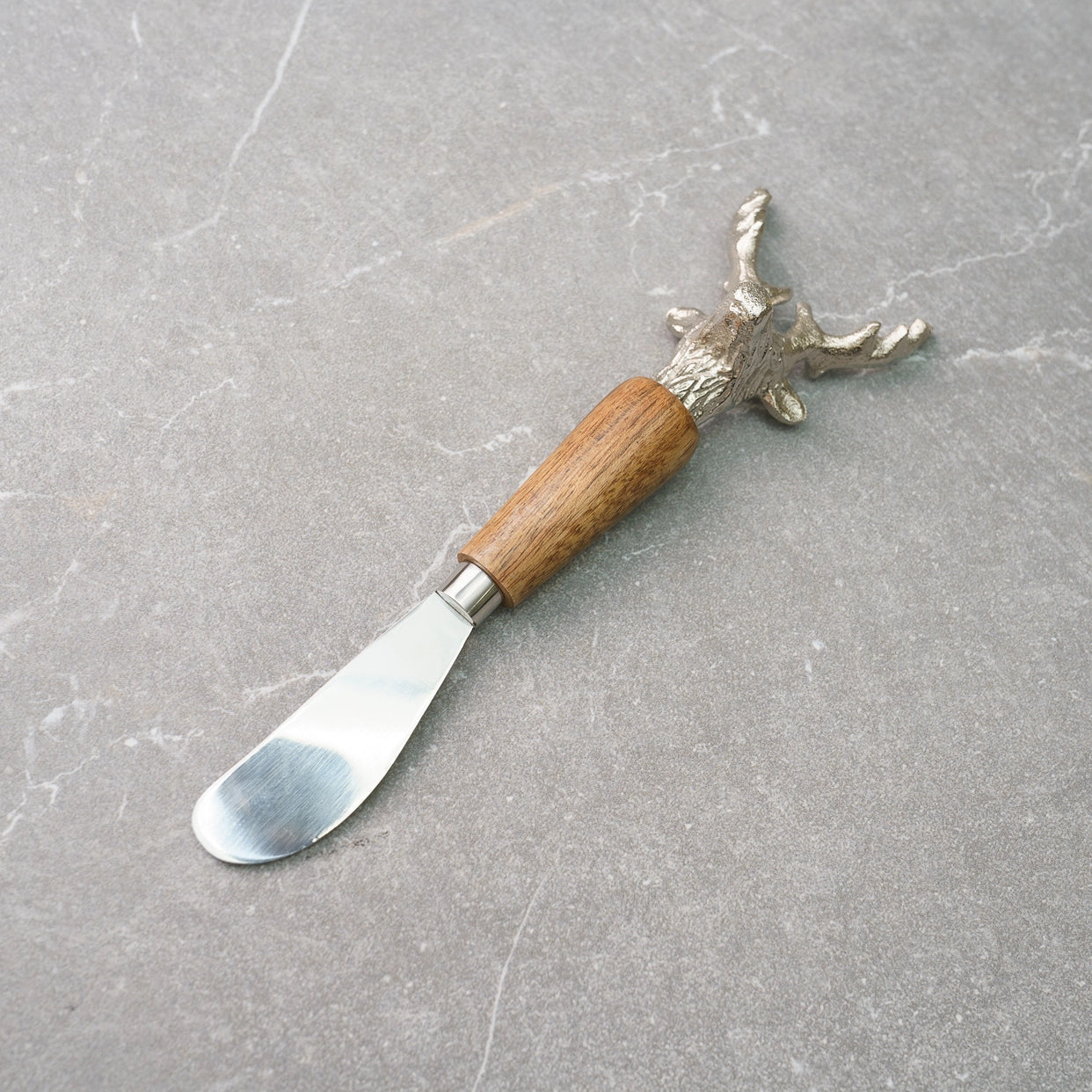 Serve your cheese with festive charm using the Reindeer Cheese Spreader, a unique and elegant utensil for any charcuterie board. This charming cheese spreader features a beautifully detailed reindeer handle, adding a touch of whimsical holiday spirit to your serving collection. Its sturdy design is perfect for spreading soft cheeses, jams, or dips. This distinctive reindeer spreader makes a wonderful holiday gift or stocking stuffer, bringing a festive touch to your Christmas or New Year's Eve party.
