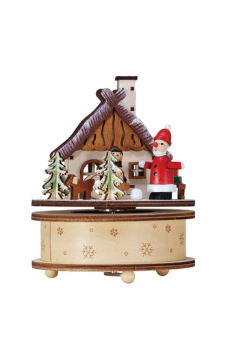 Wood Wind-Up Santa's Cottage Music Box, Plays "Oh Christmas Tree"