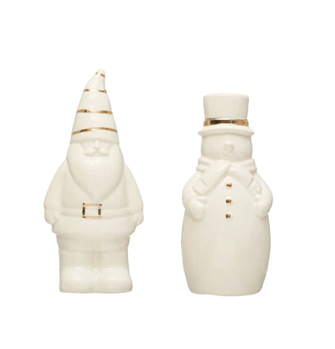 Stoneware Santa & Snowman Salt & Pepper Shakers w/ Gold Electroplating (Set of 2)