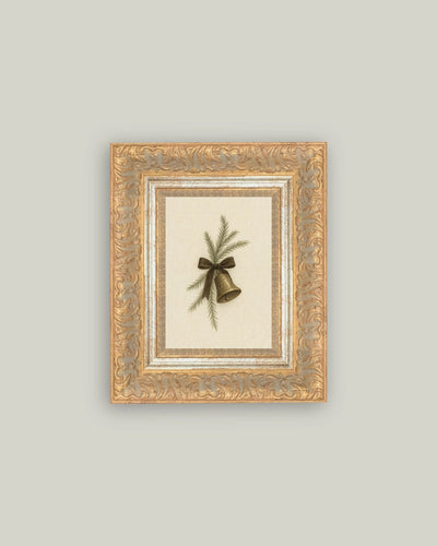 Bell with Pine Framed Antique Art 7x9