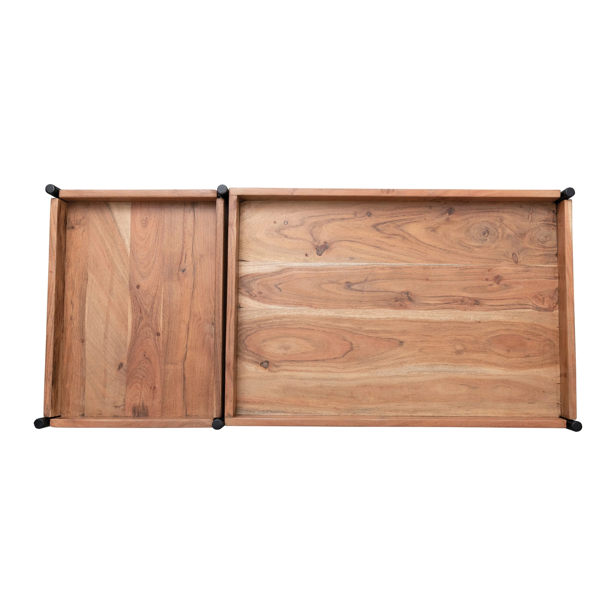 Black metal console table with 5 removable shelves in a natural finish. Add a hint of modern flair to any dining or living area with this masterfully crafted console table. Made from acacia wood and iron. Curate a space that reflects your unique sense of style with intentionally designed home décor.