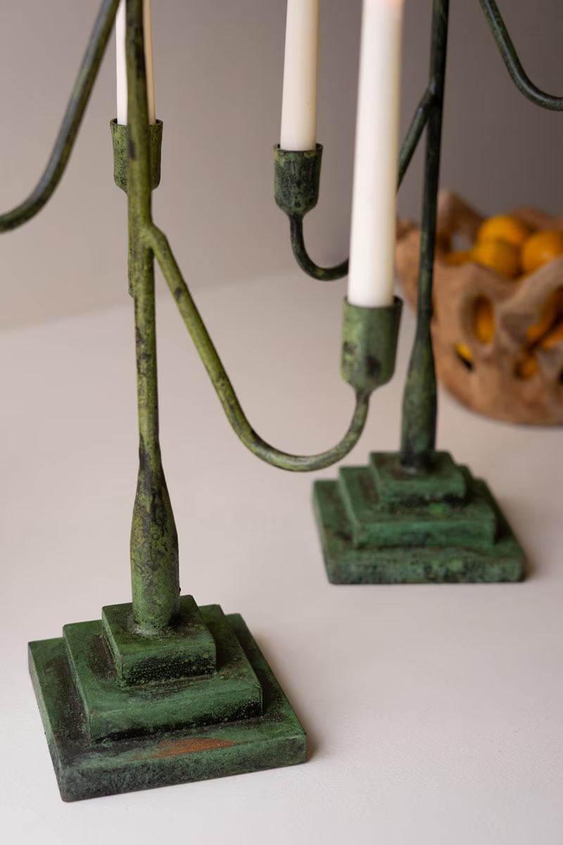 Forged-Iron Green Patina Taper Candelabra (2 Sizes)