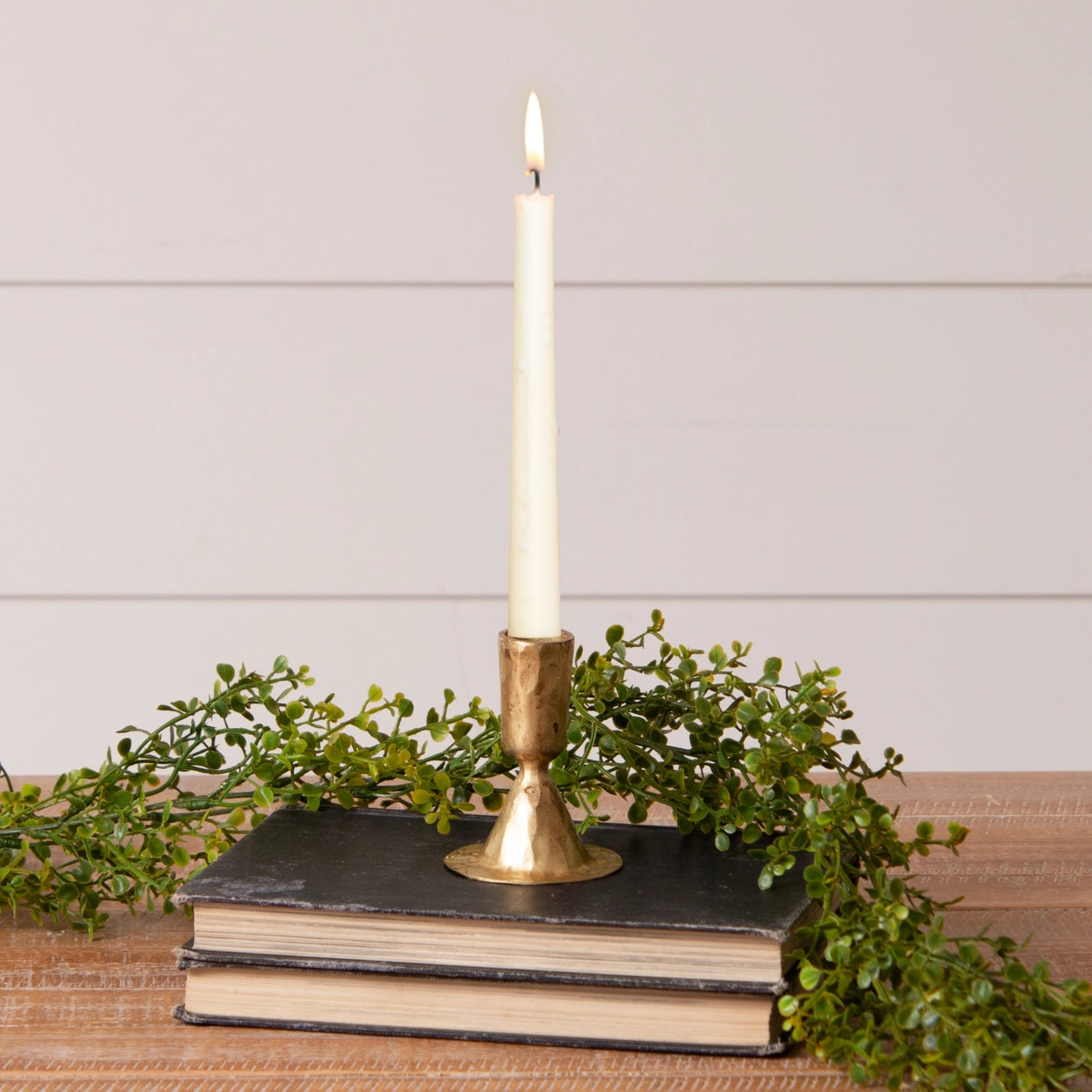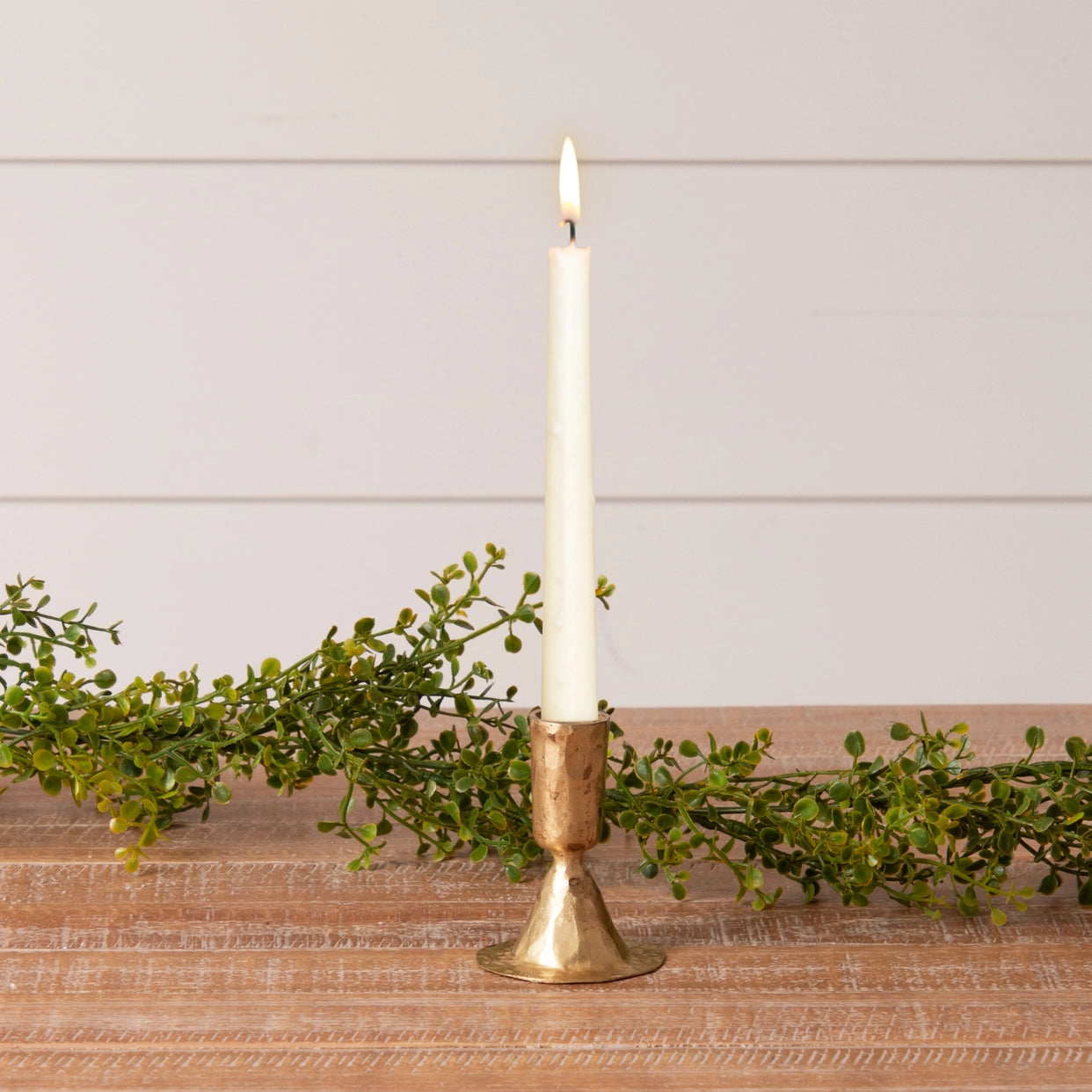 Accent your space with this gold tone hammered candle holder, expertly crafted to combine timeless elegance and artisanal texture. Its tapered design provides a sophisticated silhouette that enhances ambient lighting, while the hammered finish adds depth and character. Ideal for both modern and classic settings, this piece not only supports your candles securely but also serves as a refined accent to enrich any table or mantel display.