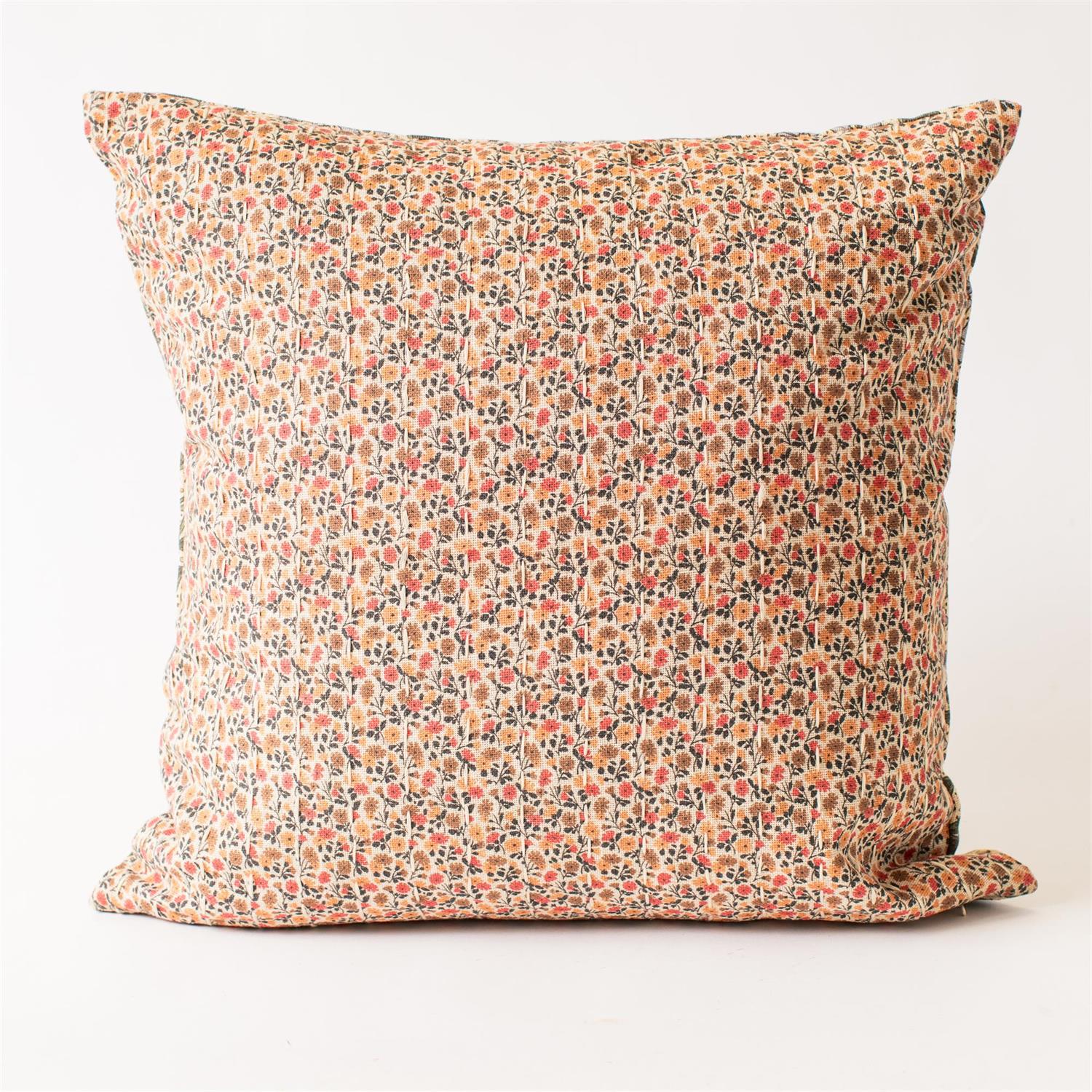 Bring warmth and charm to any room with this delightful reversible throw pillow. Featuring a lovely peach floral design, it flips to reveal a coordinating pattern on the back, giving you two looks in one. Crafted from a soft cotton and polyfiber blend, it's gentle to the touch and built to last. At 18" x 18", it's the perfect size for accent seating, sofas, or beds. A versatile piece that supports your personal style and comfort.