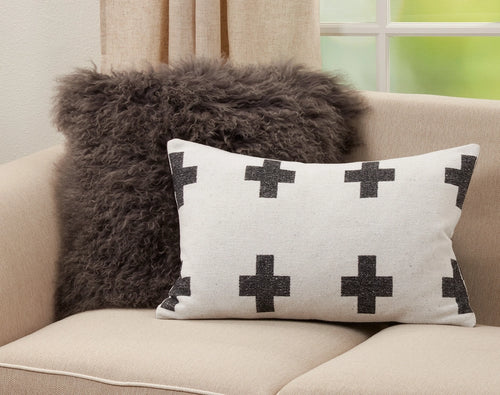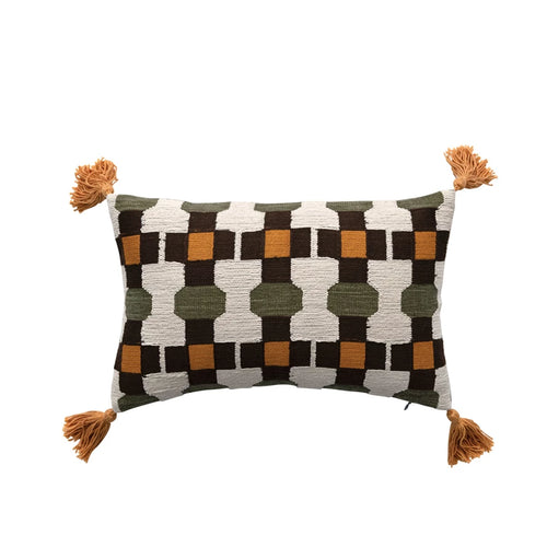 Geometric Patterned Cotton Embroidered Lumbar Pillow w/Tassels