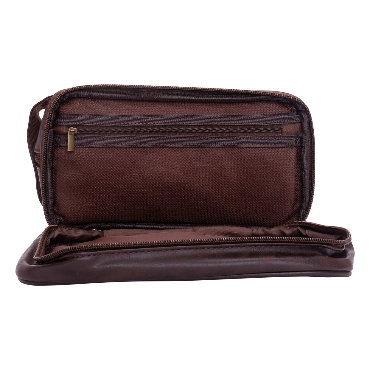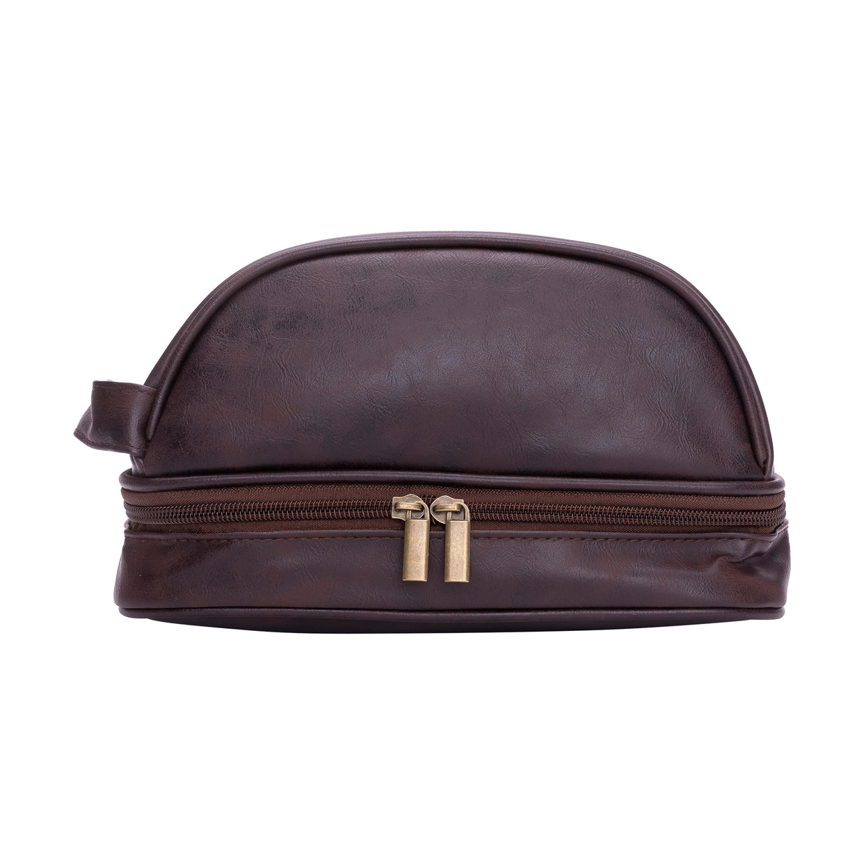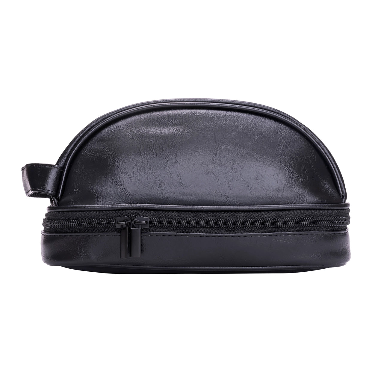 Modern and sleek travel Dopp kit made from sustainable materials like polyester, PVC, and vegan leather.