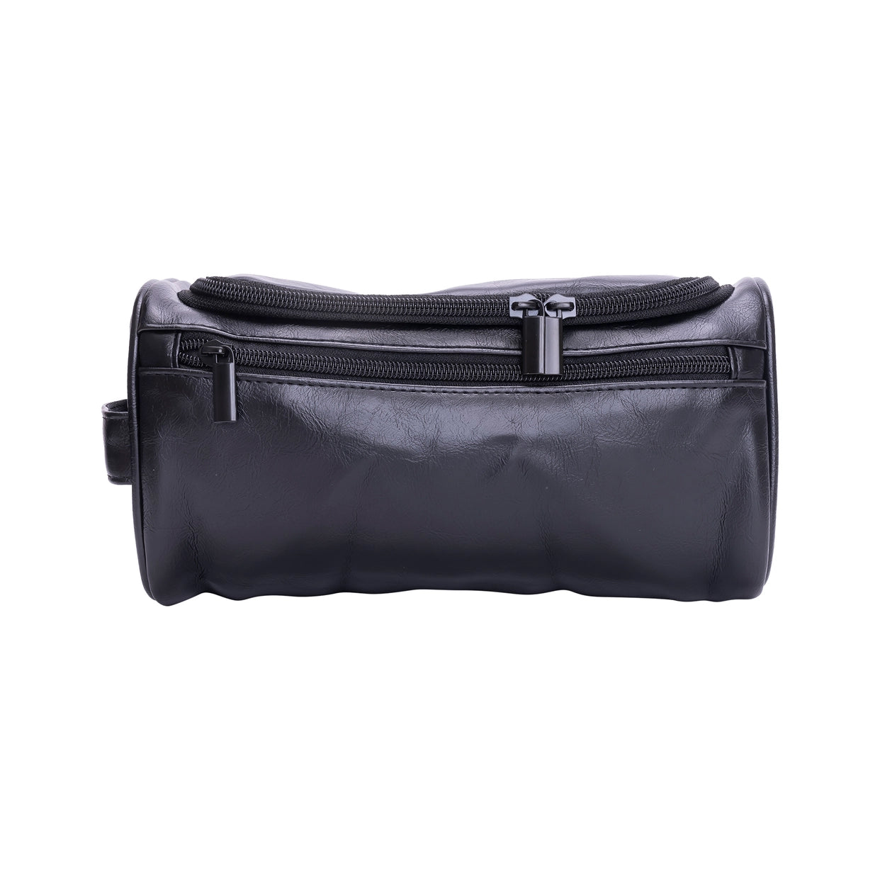 Durable travel kit made from polyester, PVC, and vegan leather. Stylish and functional for all travel essentials.