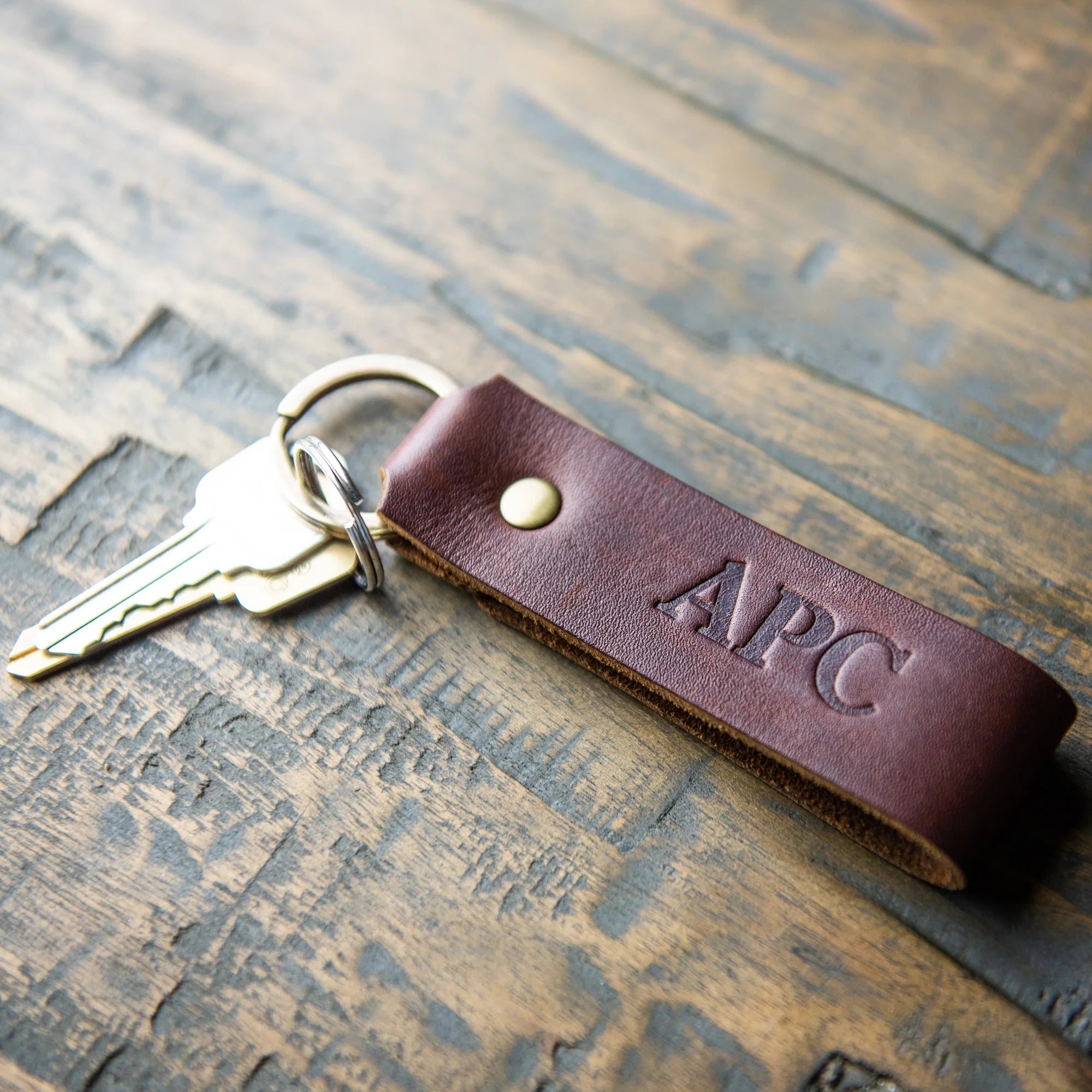 The Tucker Fine Leather Keychain is handmade at Holtz Leather Co. with the finest of Full Grain American leathers. We handpick our leather hides from a local tannery for a rustic look and feel. This is a gift that will be used and loved for a lifetime!