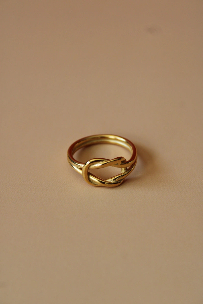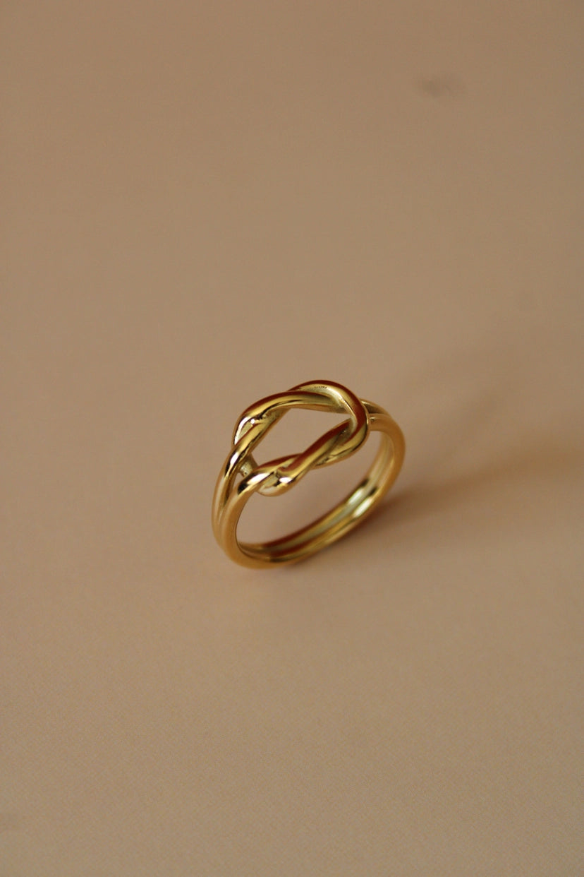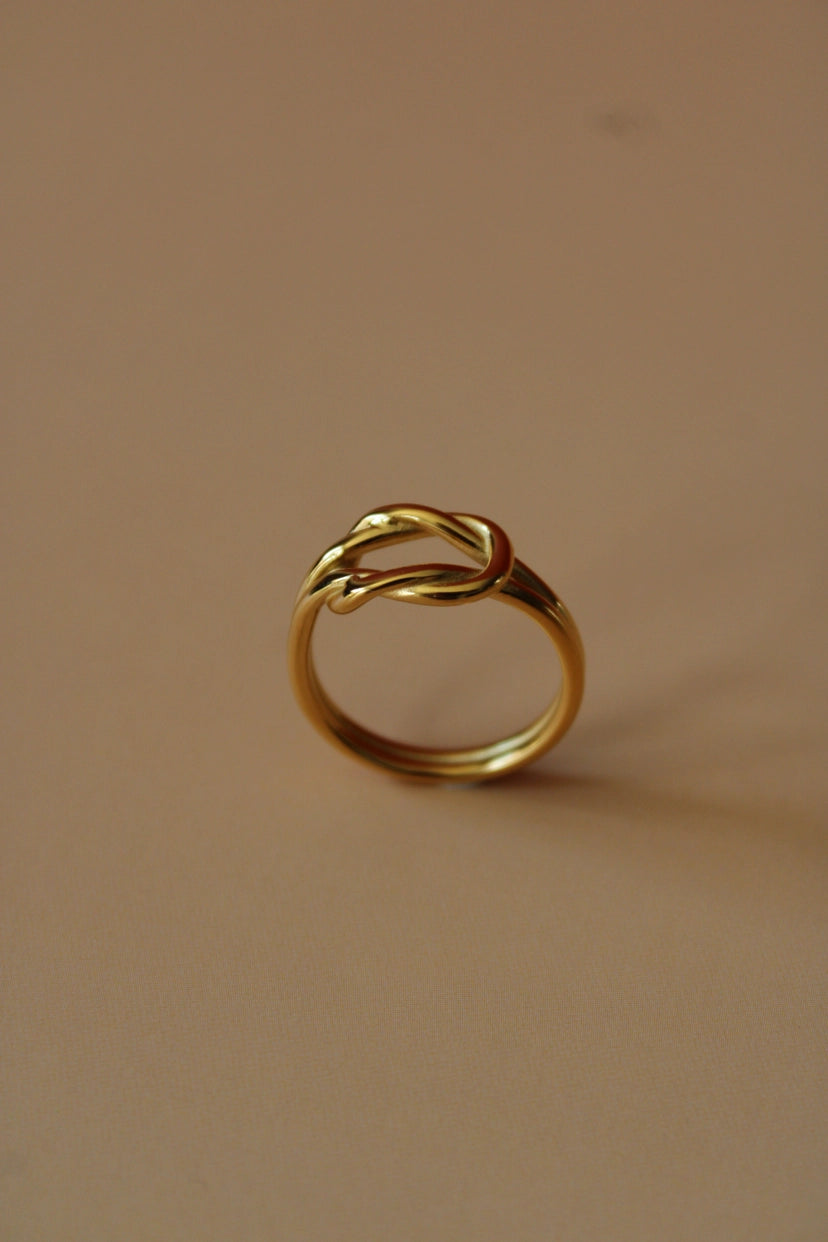 This open knot ring features a fluid, untied design that symbolizes freedom, flow, and effortless elegance. Crafted in polished gold, its loose, organic shape makes it both modern and timeless — a versatile piece that adds understated sophistication whether worn solo or stacked.