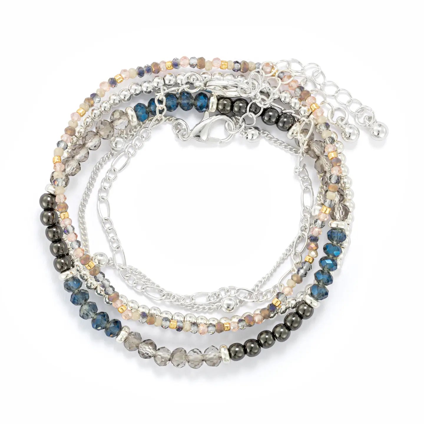 The Bracelet Set of 5- Gunmetal Silver features just-for-them jewelry and comes packaged with casual thinking-of-you messages to create new, everyday and special day gifting moments. Because, at the end of the day, a little bit of kindness is always welcome.