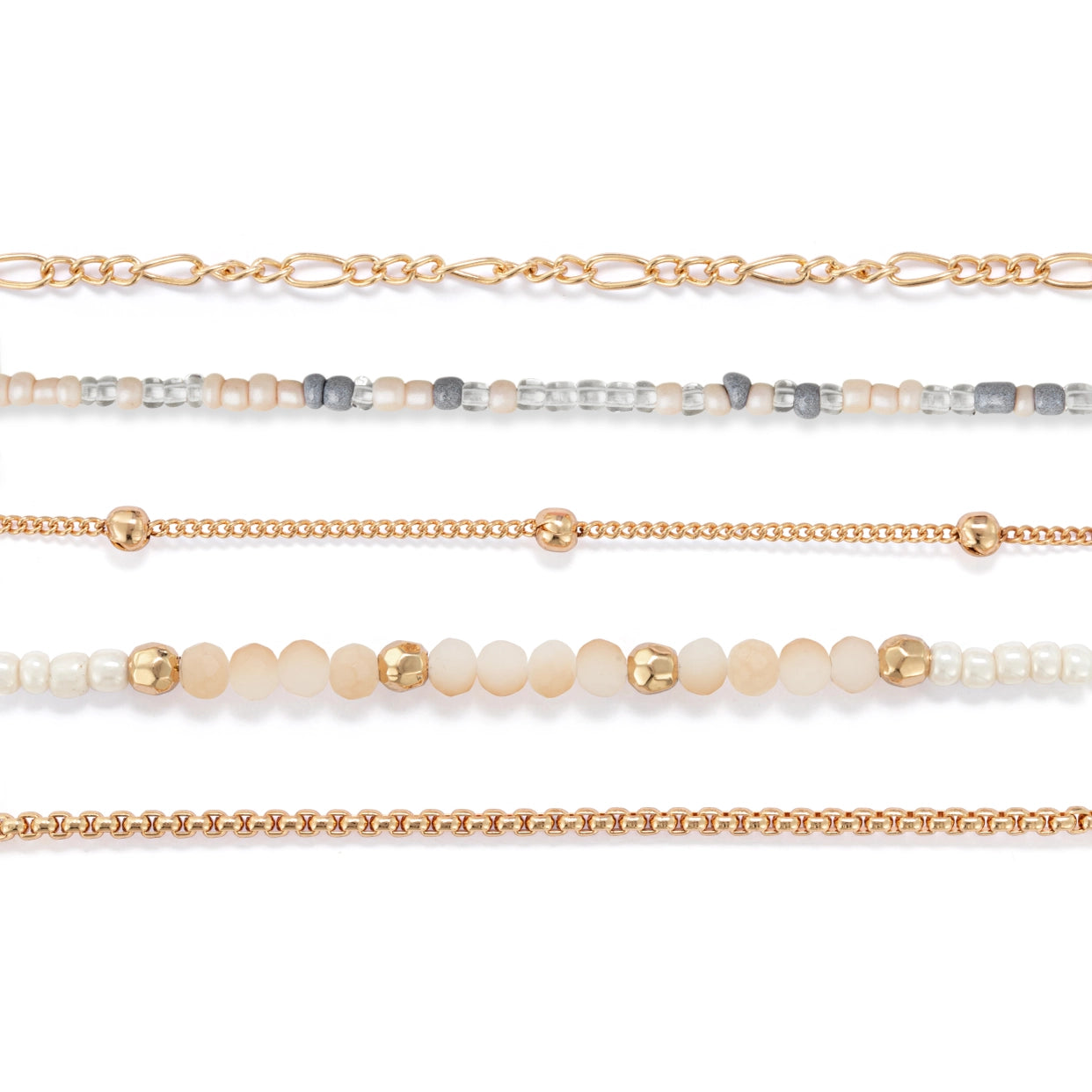 The Bracelet Set of 5 - Rose Cloud Gold features just-for-them jewelry and comes packaged with casual thinking-of-you messages to create new, everyday and special day gifting moments. Because, at the end of the day, a little bit of kindness is always welcome.