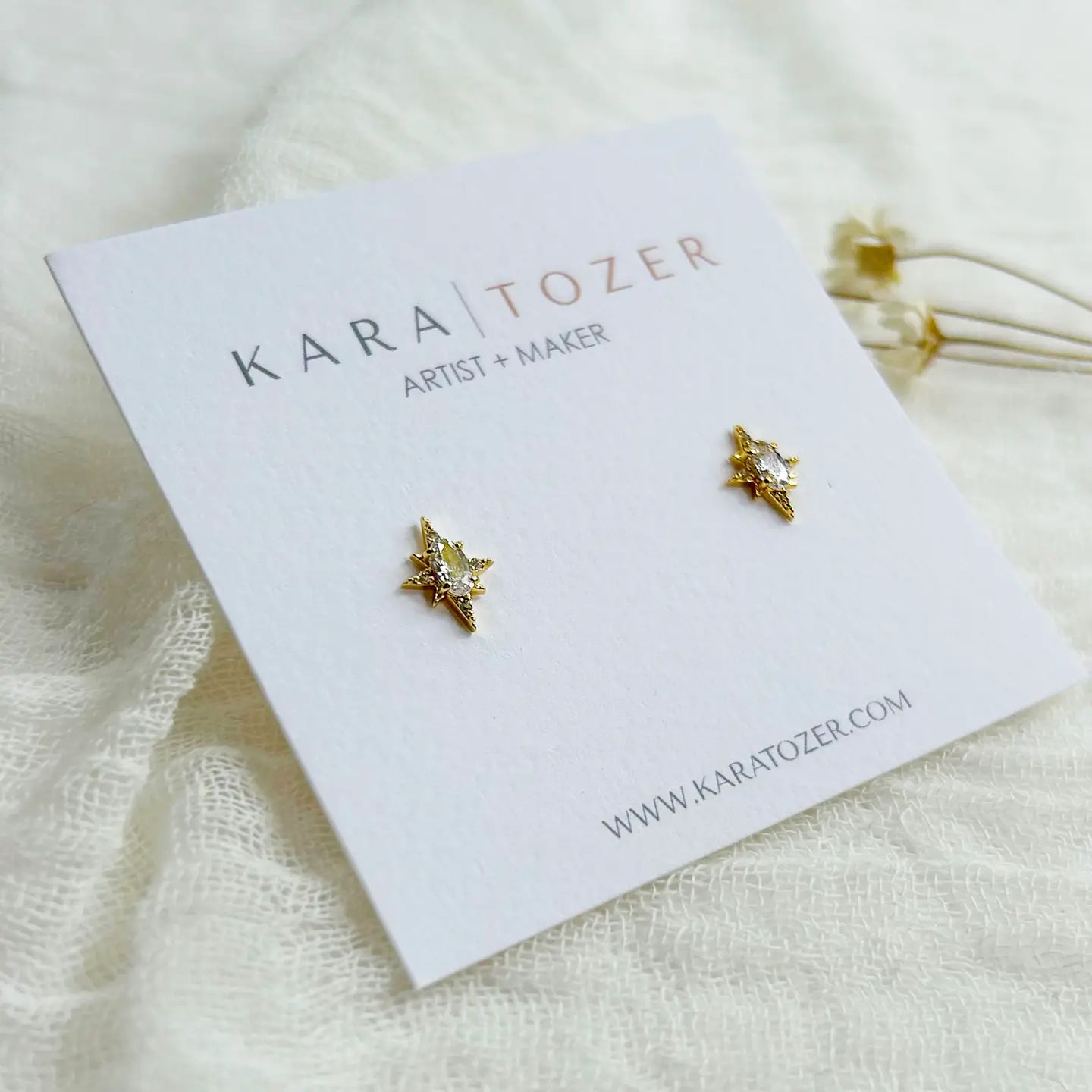 Our cubic zirconia north star studs are one of our bestsellers for the holiday season. Pairs perfectly with our other holiday stud sets and hoops. High quality 14K gold plating over brass with genuine cubic zirconia stones.