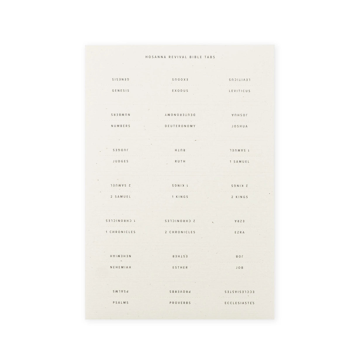 The perfect addition to your beautiful Bible is here! These Bible tabs have been intentionally designed to help you navigate the books of the Bible, while adding a sophisticated and elegant touch. Each tab is double-sided, with deluxe linen paper and black-foiled letters to ensure the best quality for your beautiful Bible. These organizational tabs are a great addition and personalized touch when choosing or gifting a new Bible. Included with these Bible tabs is a helpful guide with step-by-step instructions on how to apply your Bible tabs to ensure you get your desired outcome. We pray that these help you as you engage in Scripture and learn more of the Lord’s character and love.