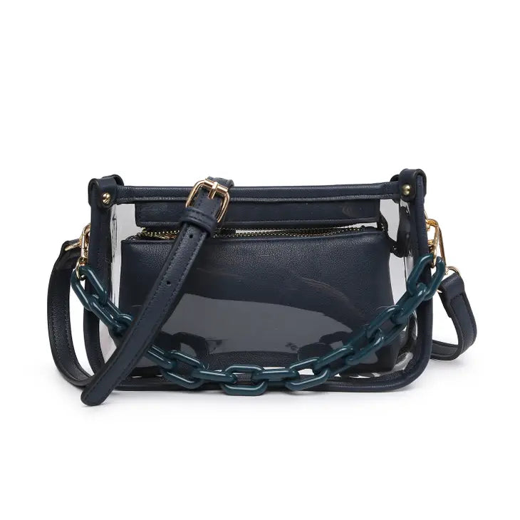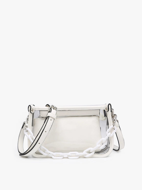 Are you ready for that concert or ballgame? The Jessica clear allows you in with zero problems and still in style. Comes with a matching smaller pouch.