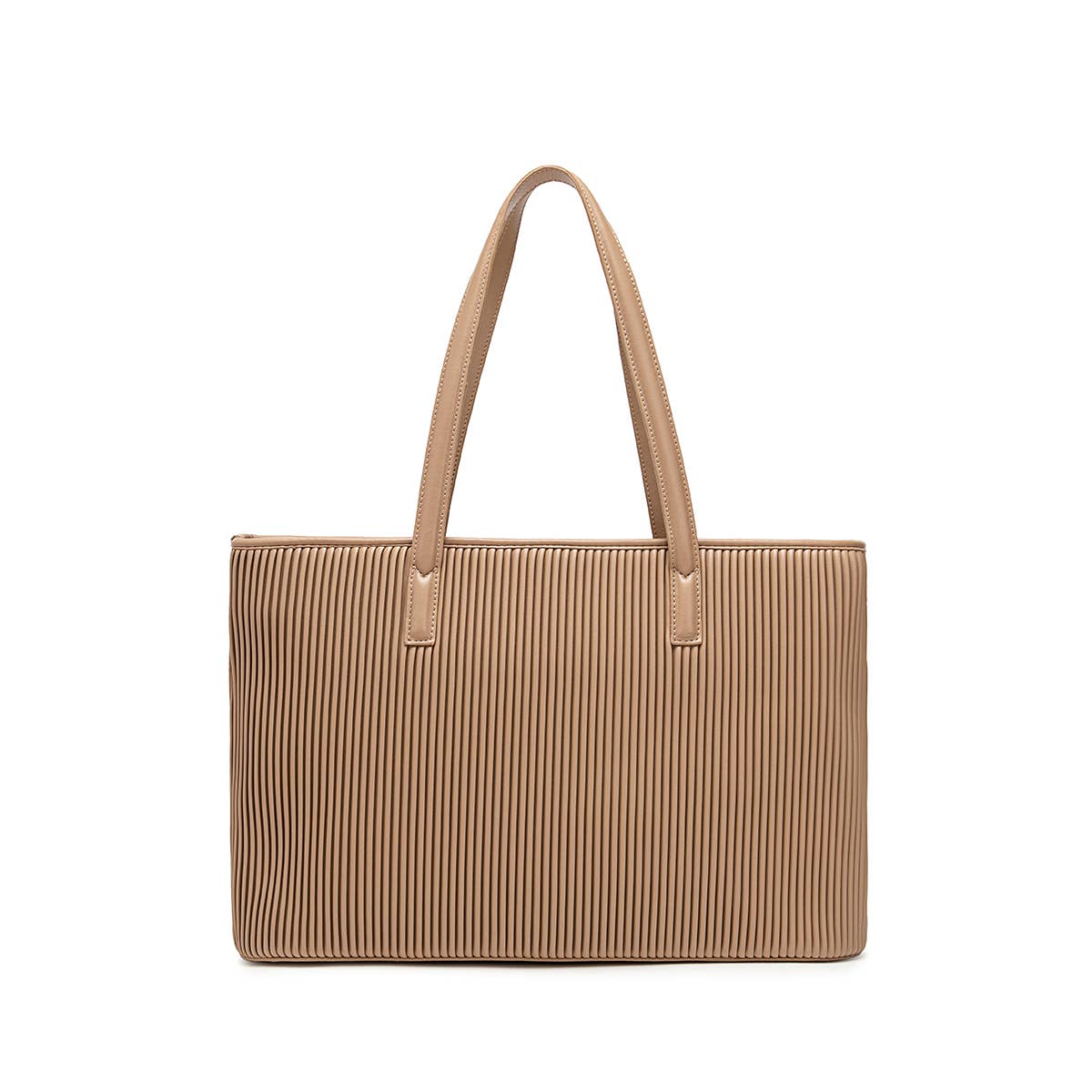 The ultimate tote that will follow you through life - school, work, shopping, baby-ing, and even grandmother-ing. Made with premium pleated vegan leather, it's buttery soft and lightweight. Designed with lots of space, you could fit a laptop, a cardigan for the unexpected chilly weather, a water bottle, a notebook, and even a small umbrella for those rainy days. Like things super organized? Pair this with an organizer pouch like our ''Sally'' pouch, and you'll be ready for whatever life throws at you. The exterior of the bag is made with recycled vegan leather that is made from recycled plastic bottles, and our lining is created from a durable fabric that is also created from recycled plastic bottles, because sustainability matters, a lot.