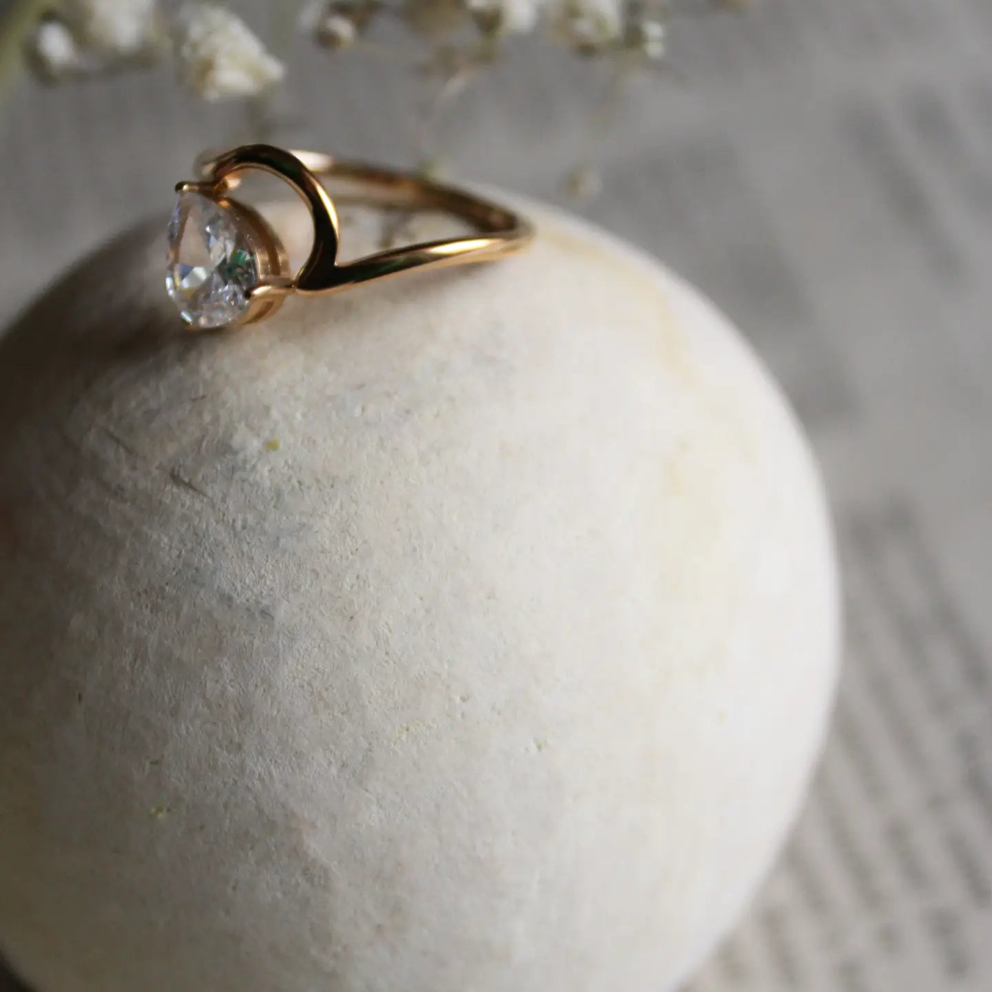 Crafted from durable stainless steel and finished with an 18k gold plating, the Margot Ring offers lasting elegance with waterproof resilience. Its hypoallergenic, nickel-free composition ensures comfort for sensitive skin. Proudly made in the USA, this ring combines expert craftsmanship with quality materials for a refined, reliable accessory.