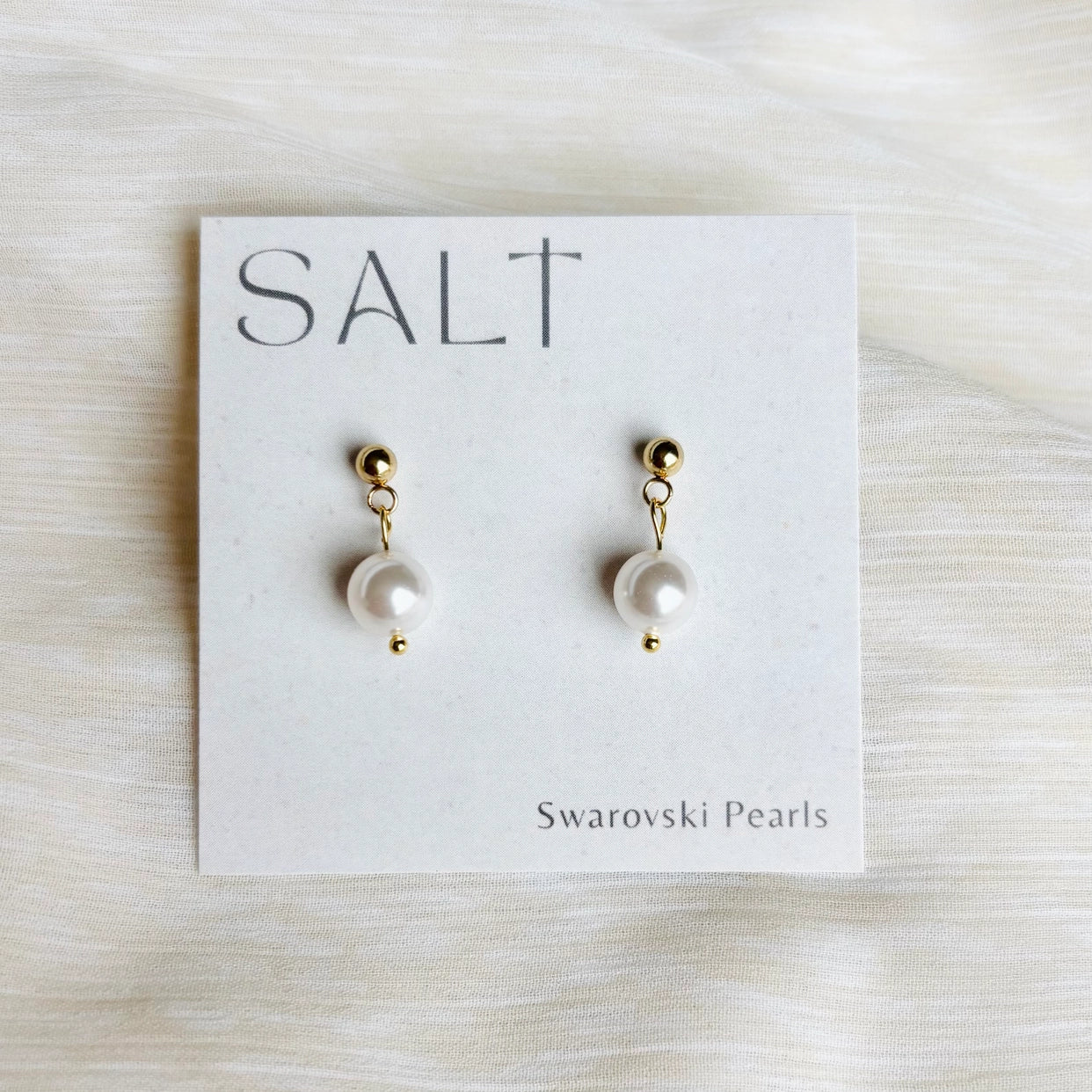 These Swarovski pearls are lustrous & beautiful! They are a dreamy ivory color, perfectly complemented by 18k gold coated hardware - simple ball stud posts. Pearls have been everywhere lately, and we are here for it! They are timeless and can be dressed up or down.