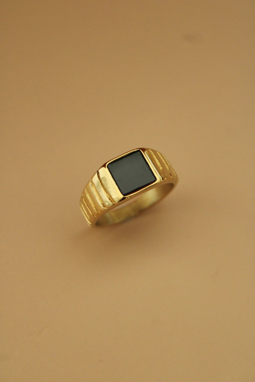 The Charles Ring (Black) combines durable stainless steel with luxurious 18k gold plating, offering a sleek look without compromising comfort. Nickel-free and hypoallergenic, it’s designed to be gentle on sensitive skin while resisting tarnish for lasting shine. Available in various sizes, this ring is a stylish, reliable choice for everyday wear.