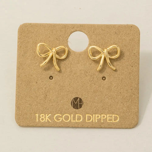 Gold Dipped Wire Ribbon Bow Stud Earrings (2 Colors)