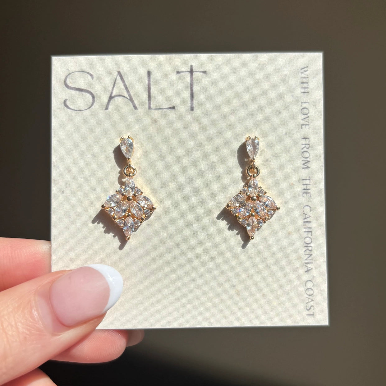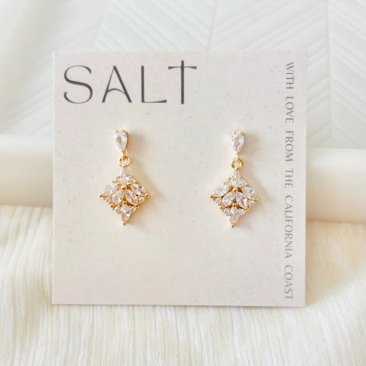 These earrings give a nod to vintage style without being old-fashioned. Current and chic, these dazzling Juliette earrings are for anyone who wants to add a touch of sparkle to their outfit! Cubic zirconia crystals are arranged in an ornate cluster, creating an art deco inspired look. Especially perfect for brides, bridal parties, and wedding guests!